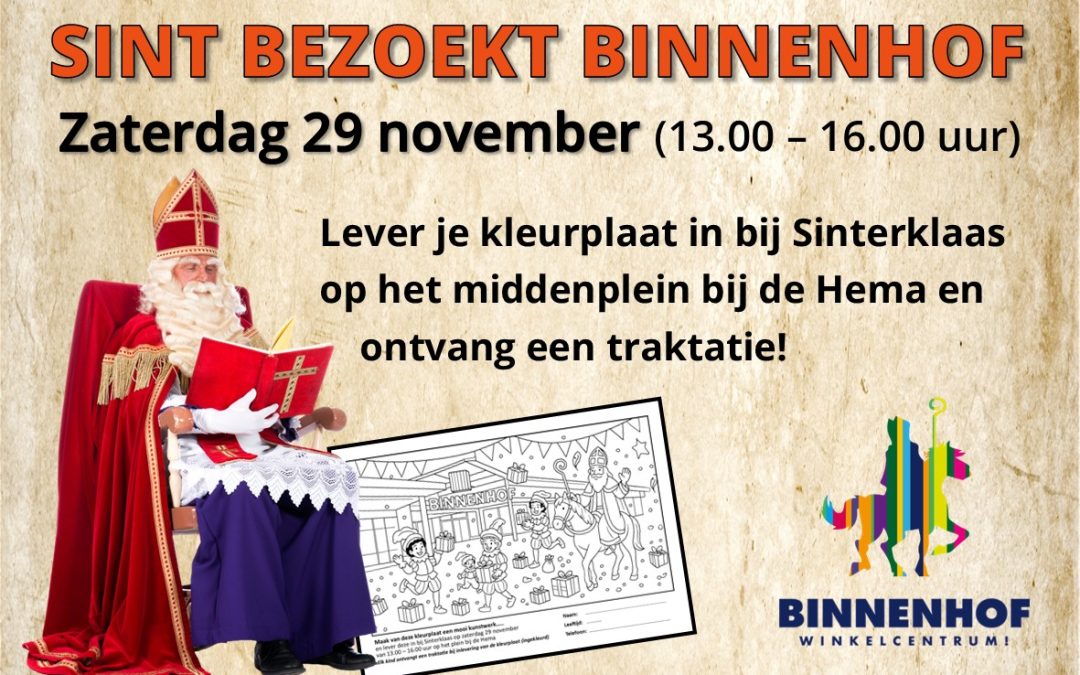 Aanstaande zaterdag 29 november komt Sinterklaas hoogstpersoonlijk langs in Winkelcentrum Binnenhof!